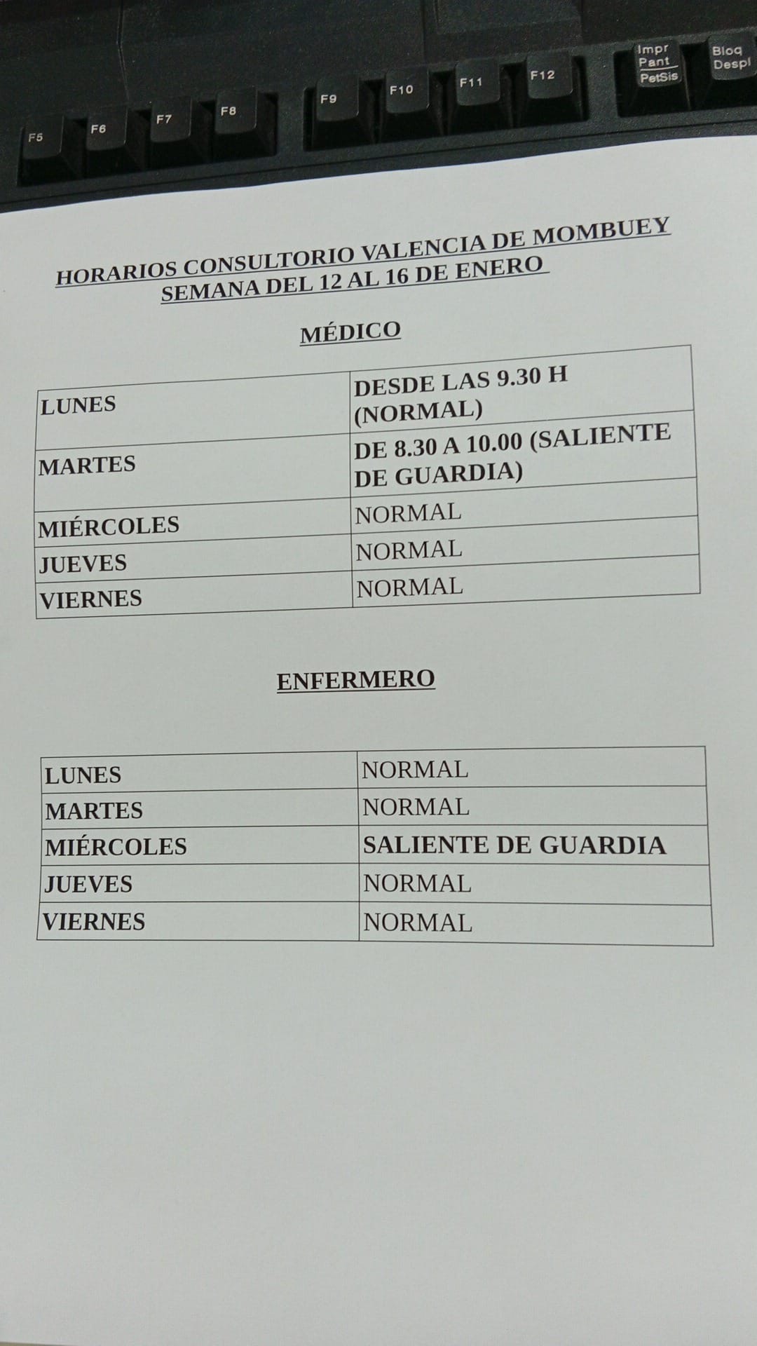 Horarios del consultorio médico para la próxima semana.